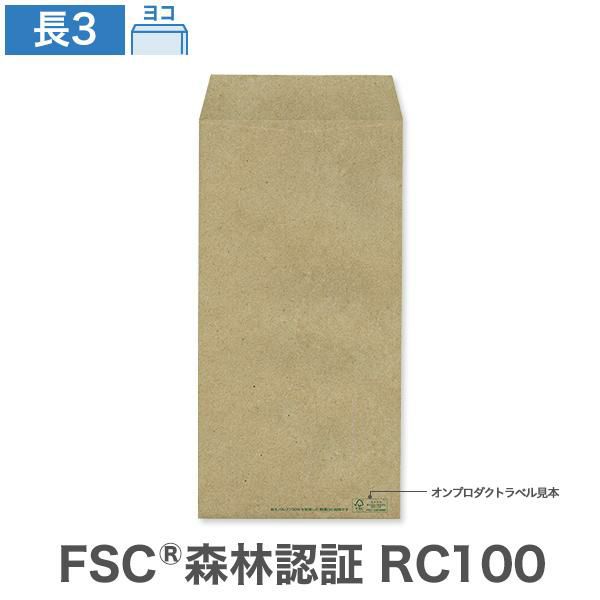 長3封筒 森林認証 RC100 未晒クラフト 100 ヨコ貼 100枚